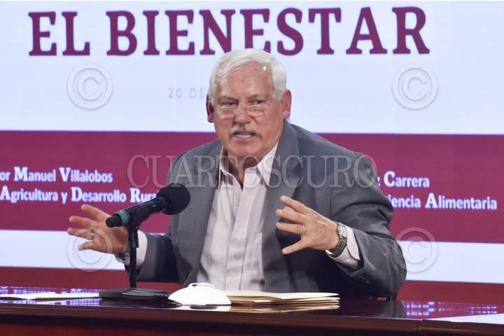Víctor Manuel Villalobos, secretario de Agricultura y Desarrollo Rural; durante conferencia de prensa en la que se ofrecieron detalles sobre el avance del programa “Producción para el Bienestar” durante la emergencia sanitaria por coronavirus (covid-19).