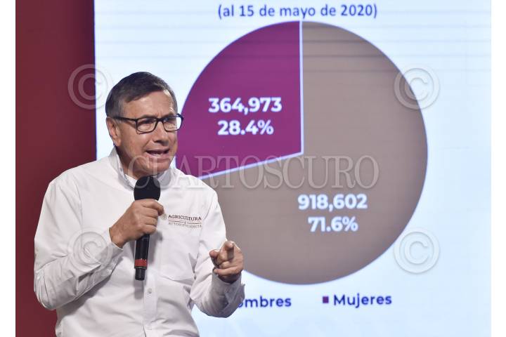 Víctor Manuel Villalobos, secretario de Agricultura y Desarrollo Rural, durante conferencia de prensa en la que se ofrecieron detalles sobre el avance del programa “Producción para el Bienestar” durante la emergencia sanitaria por coronavirus (covid-19).