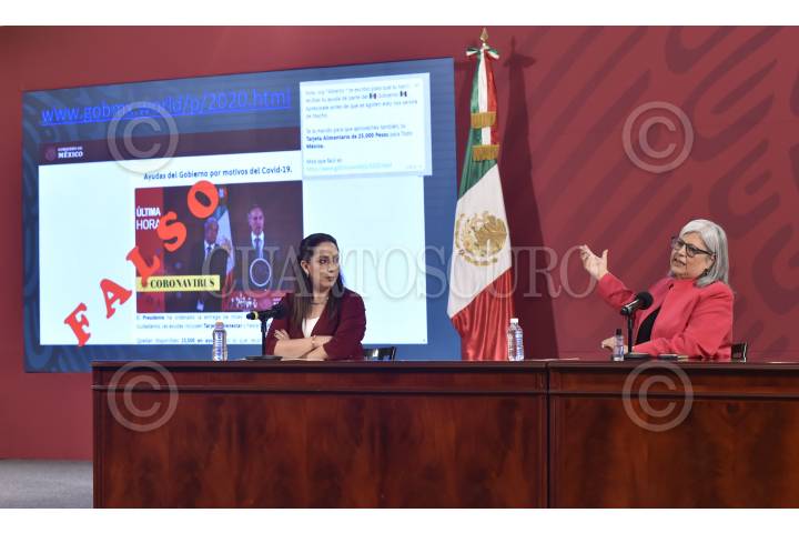 Norma Gabriela López; directora de Incorporación y Recaudación del IMSS, y Graciela Márquez, secretaria de Economía, durante la conferencia de prensa en la que se brindaron detalles sobre los microcréditos que el gobierno federal ha puesto en disposición durante la emergencia sanitaria por coronavirus (covid-19).