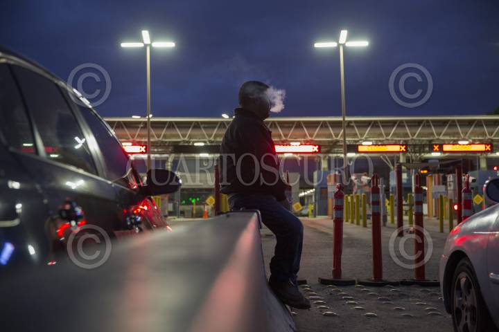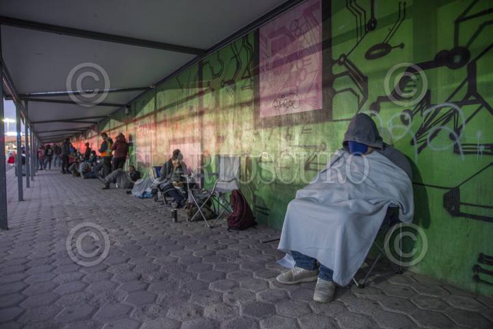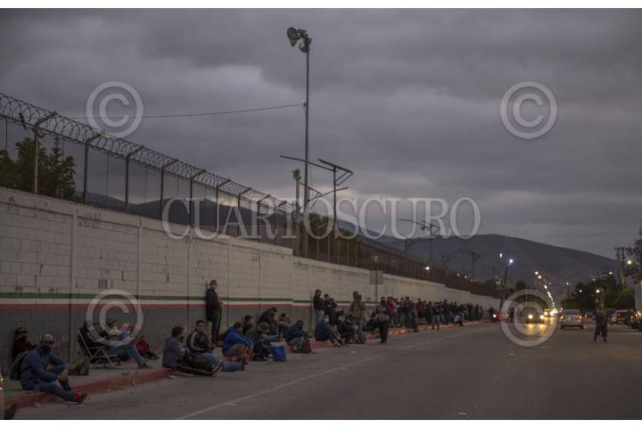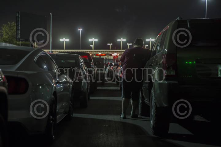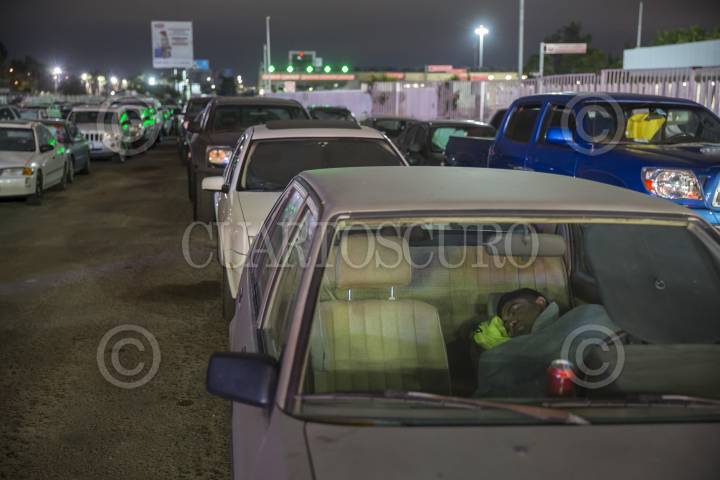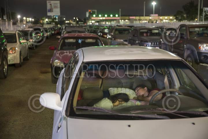 Familias duermen en su auto o en la banqueta para cruzar a tiempo la frontera.