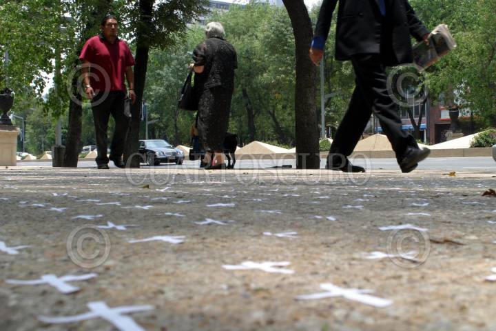 México, D.F. 04 JULIO 2004.- Los manifestantes pegaron cruces a lo largo de Av. Reforma, enfrente de la embajada de E.E. U.U en memoria de todas las personas que han muerto en las guerras. FOTO: Sandra Perdomo/CUARTOSCURO.COM