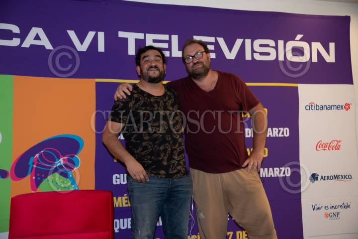 Los creadores del programa 31 Minutos, Pedro Peirano y Alvaro Díaz en conferencia de prensa para presentar las fechas de su espectáculo titulado "Yo nunca vi televisión", que recorrera algunos lugares de la República Mexicana.