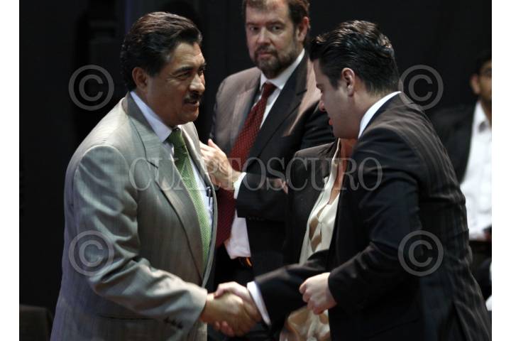 MÉXICO, D.F., 20NOVIEMBRE2012.- Ramiro Hernandez Garcia, presidente municipal de Guadalajara y Aristoteles Sandoval, gobernador electo de Jalisco durante la presentación del Plan Maestro Guadalajara Ciudad Creativa Digital que se realizó en la Secretaria de Economia. FOTO: RODOLFO ANGULO /CUARTOSCURO.COM