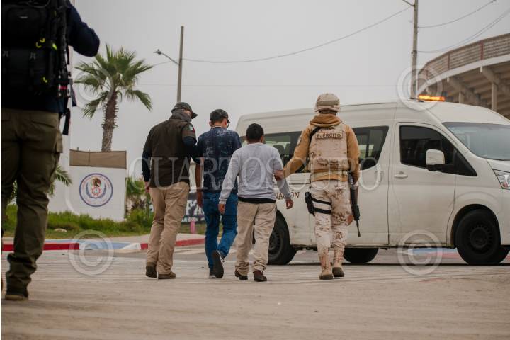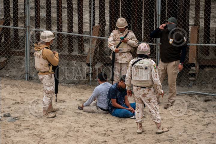 TIJUANA, BAJA CALIFORNIA, 27SEPTIEMBRE2023.- Detienen a dos migrantes que intentaron cruzar el muro fronterizo de Playas de Tijuana. Continua el cruce ilegal por el muro fronterizo de playas de Tijuana, a la altura del faro, varias personas han cruzado por los huecos de las reparaciones que realiza Estados Unidos en el muro. Entre los migrantes se encontraba un menor de edad de aproximadamente 6 años que cruzo con su familia en dirección a San Diego. Además dos masculinos fueron detenidos por elementos del Ejercito Mexicano en su intento por cruzar los muros. Debido a estos hechos, elementos de la Policía y Guardia Nacional se encuentran realizando rondines por la zona. FOTO: CUARTOSCURO.COM