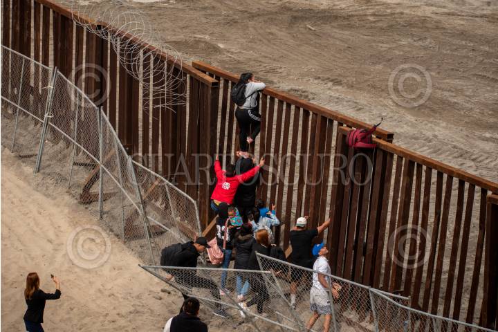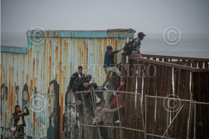TIJUANA, BAJA CALIFORNIA, 27SEPTIEMBRE2023.- Migrantes intentan cruzar el muro fronterizo de Playas de Tijuana. Continua el cruce ilegal por el muro fronterizo de playas de Tijuana, a la altura del faro, varias personas han cruzado por los huecos de las reparaciones que realiza Estados Unidos en el muro. Entre los migrantes se encontraba un menor de edad de aproximadamente 6 años que cruzo con su familia en dirección a San Diego. Además dos masculinos fueron detenidos por elementos del Ejercito Mexicano en su intento por cruzar los muros. Debido a estos hechos, elementos de la Policía y Guardia Nacional se encuentran realizando rondines por la zona. FOTO: CUARTOSCURO.COM