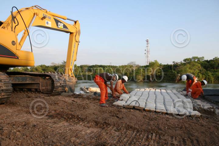 NACAJUCA, TABASCO, 27MARZO2008.- Debido a la repentina creciente en la afluencia de aguas del río Samaria, trabajadores laboran a marcha forzada colocando bordos de protección para evitar que las orillas se deslaven y puedan provocar una repentina inundación en zonas bajas. FOTO: MARCO POLO GUZMÁN HERNÁNDEZ/CUARTOSCURO.COM