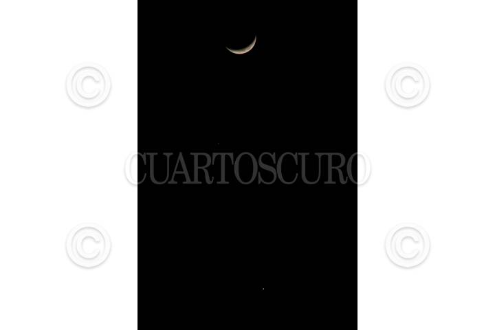 MÉXICO, D.F. 01DICIEMBRE2008.- La luna en cuarto creciente es vista junto al planeta Júpiter en el cielo FOTO: SÁSHENKA GUTIÉRREZ/CUARTOSCURO.COM