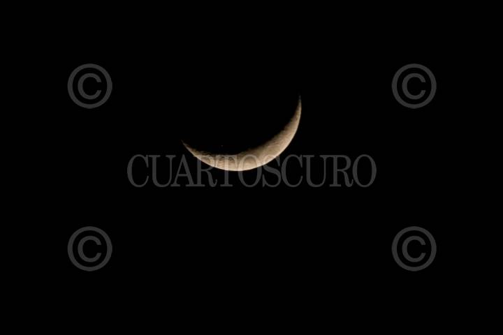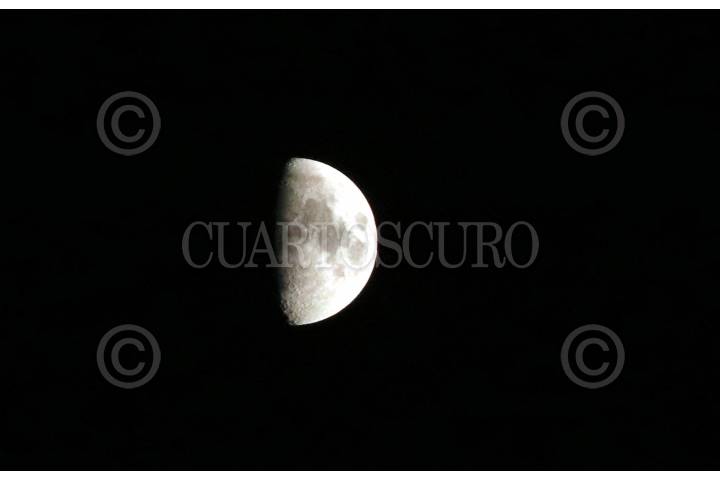 MÉXICO, D.F., 13FEBRERO2013.- La luna de ésta noche en su fase creciente, durante su tránsito cotidiano en un cielo despejado. FOTO: DIEGO SIMÓN SÁNCHEZ /CUARTOSCURO.COM