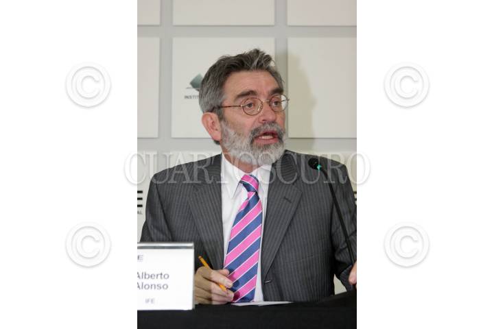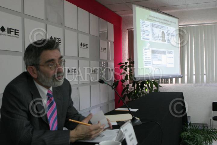 MÉXICO, D.F., 08ENERO2008.- El director ejecutivo del Registro Federal de Electores, Alberto Alonso y Coria, ofreció conferencia de prensa para informar informó que al cierre de 2007 un total de 75 millones 82 mil 153 ciudadanos se habían inscrito al Padrón Electoral, además mostró el nuevo formato de credencial para votar. FOTO: CUARTOSCURO.COM
