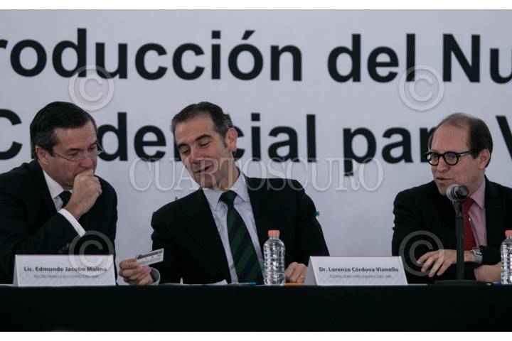 Lorenzo Cordova Vianello, consejero presidente del Instituto Nacional Electoral (INE), durante el inicio de producción del nuevo modelo de la credencial para votar.