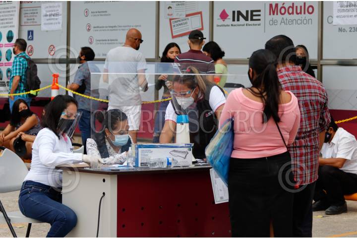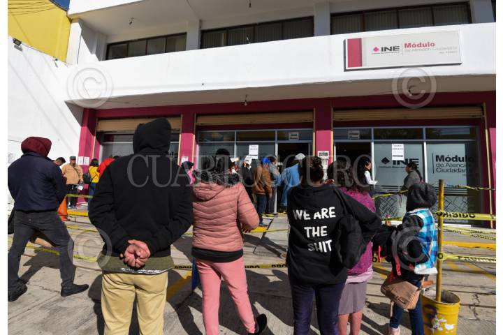 Módulos del INE lucieron abarrotados por personas que buscaban tramitar su credencial de elector, hoy vence el plazo para hacerlo.