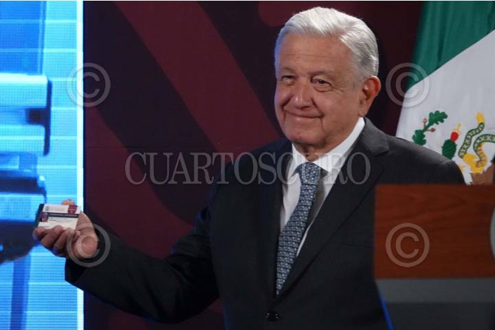 CIUDAD DE MÉXICO, 24SEPTIEMBRE2024.- Andrés Manuel López Obrador, presidente de México, mostró su credencial IMSS-Bienestar durante la conferencia mañanera en tema de Salud, en la que autoridades dieron su informe de resultados durante el sexenio como parte del último día dedicado a esta sección. El acto se realizó en el Salón de Tesorería en Palacio Nacional. FOTO: GRACIELA LÓPEZ /CUARTOSCURO.COM