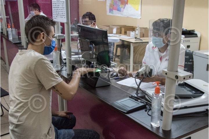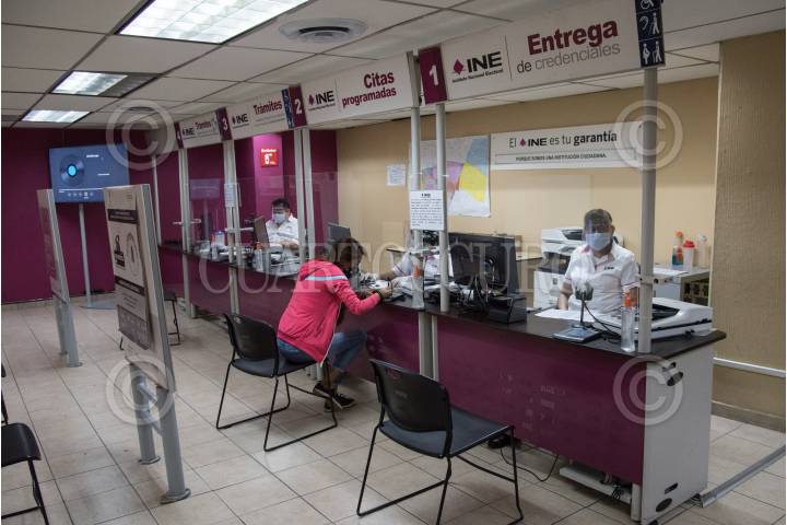 Segundo día de reapertura de los módulos del Instituto Nacional Electoral (INE) en donde personas a través de citas programadas por internet recogen su credencial de elector siguiendo las medidas de sanidad correspondientes para evitar la propagación de covid-19. Será a partir del 17 de agosto cuando se podrán realizar los demás trámites presenciales.