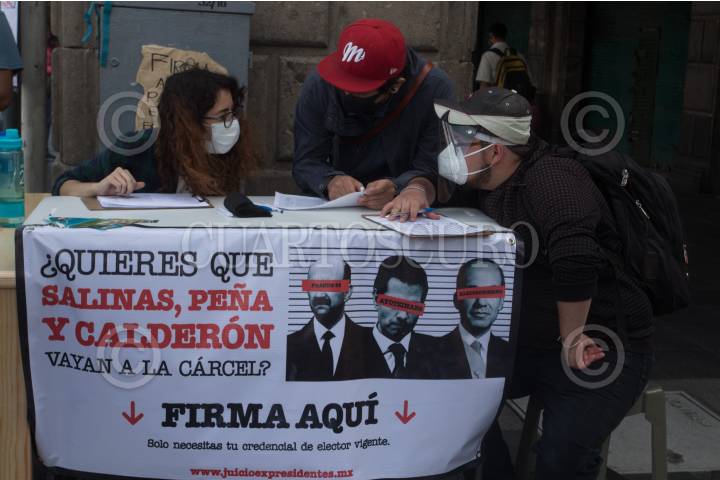 Un grupo de jovenes estudiantes recabaron firmas de la ciudadanía para enjuiciar a los expresidentes Carlos Salinas de Gortari, Enrique Peña Nieto y Felipe Cálderón Hinojosa por acto de corrupción que ejercieron durante el gobierno de sus sexenios