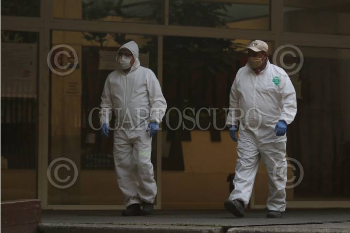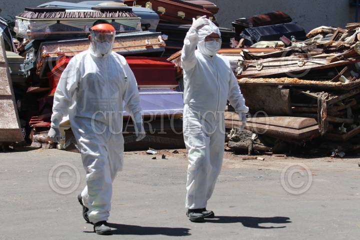 Trabajadores del Velatorio del Panteón San Nicolás Tolentino se sanitizaron después de la llegada de cuerpos de muerte a causa de Covid-19