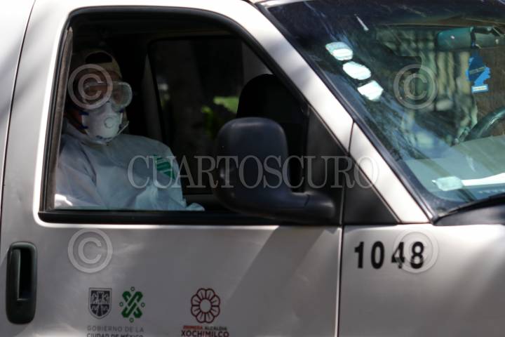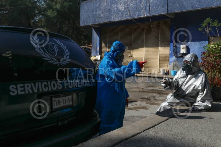 Trabajadores del Velatorio del Panteón Civil San Nicolás Tolentino recibieron el cuerpo de una muerte de Covid-19 para el servicio de cremación