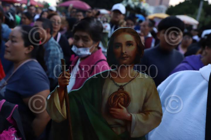 CIUDAD DE MÉXICO, 28OCTUBRE2024.- Miles de creyentes de San Judas Tadeo asistieron este lunes a la Iglesia de San Hipólito para celebrar al santo. FOTO: DANIEL AUGUSTO/ CUARTOSCURO.COM