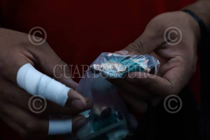 CIUDAD DE MÉXICO, 28OCTUBRE2024.- Una persona lleva en su mano la figura de San Judas Tadeo afuera de la iglesia de San Hipólito. FOTO: DANIEL AUGUSTO/ CUARTOSCURO.COM
