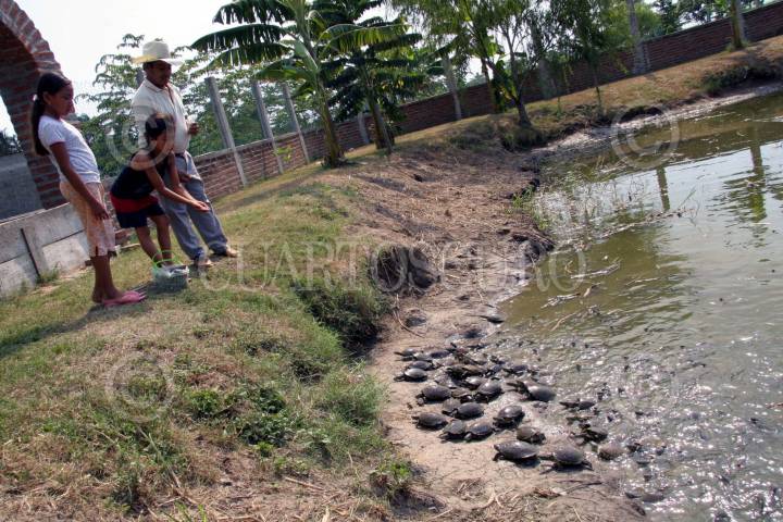 JALPA DE MÉNDEZ, TABASCO, 20AGOSTO2006.-Unico en su genero en Latinoamerica por conservar las diferentes especies de quelonios, la Granja de Tortugas La Encantada muestra las diferentes etapas del proceso de la cría y ademas lo ofrece como platillo a degustar en diferentes guisos. Apesar que estos animales se encuentra en peligro de extincion y protegidos por el medio ambiente, las autoridades como la SEMARNAT y PROFEPA permiten la comercializacion una vez al año de varios centenares a esta granja ubicada en la rancheria Reforma segunda sección. FOTO: Marco Polo Guzmán/CUARTOSCURO.COM