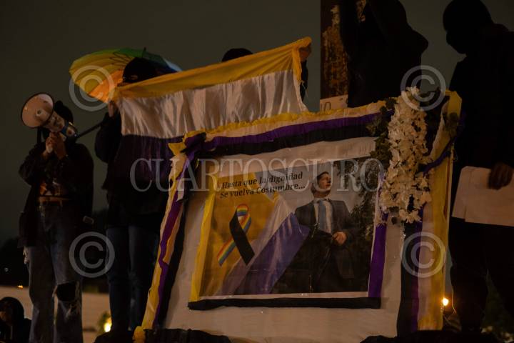 SAN CRISTÓBAL DE LAS CASAS, CHIAPAS, 14NOVIEMBRE2023.- Integrantes de la comunidad LGBTTTIQ+ realizaron una manifestación para exigir justicia a un día del asesinato del Magistrade Jesús Ociel y su pareja, quienes fueron encontrados sin vida en su casa en el estado de Aguascalientes,. La comunidad exigió al estado se investigue este como un crimen de odio. FOTO: ISABEL MATEOS /CUARTOSCURO.COM