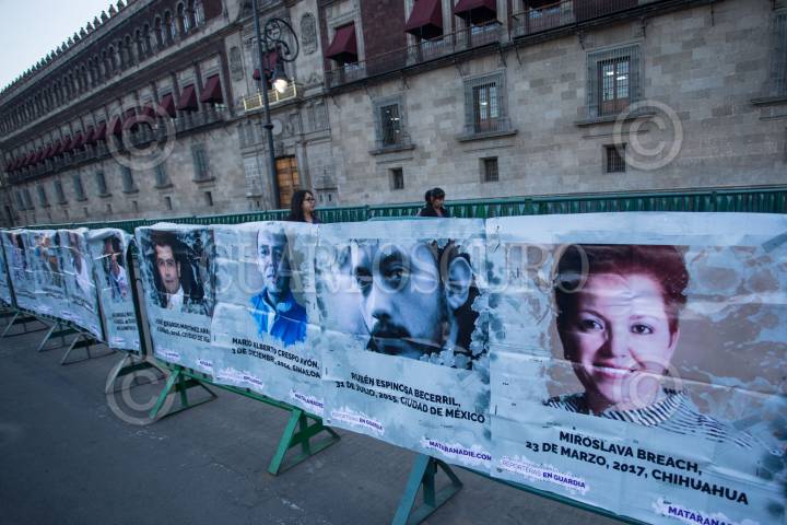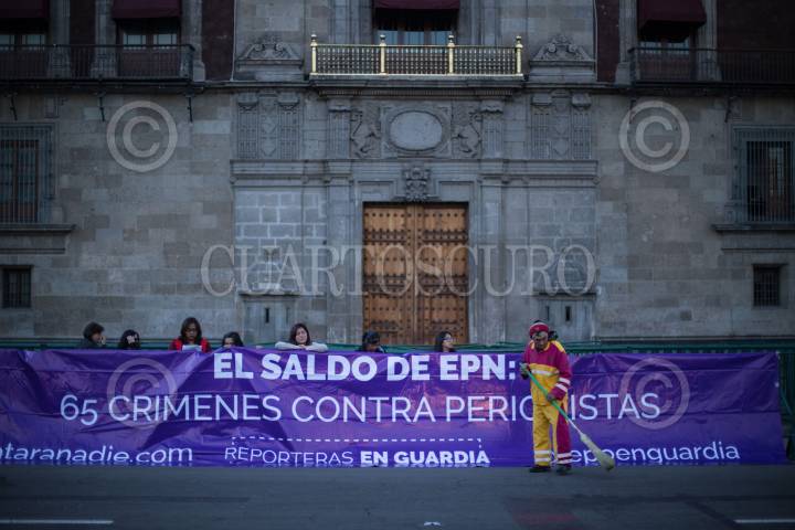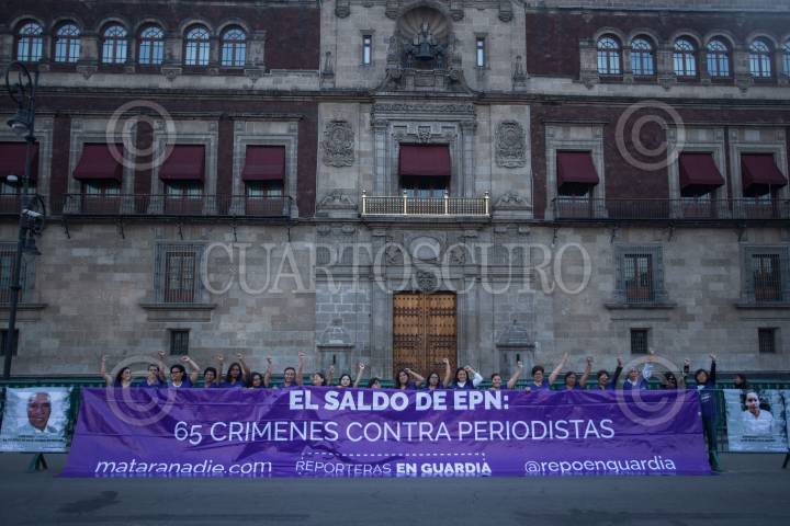 CIUDAD DE MÉXICO, 25OCTUBRE2018.- Mujeres periodistas de varios estados del país organizadas en el colectivo "Reporteras en Guardia", se manifestaron frente a Palacio Nacional para recordar y exigir justicia con un "Memorial Matar a Nadie" al gobierno saliente de Enrique Peña Nieto, que durante su sexenio fueron asesinados 66 periodistas. FOTO: ISABEL MATEOS /CUARTOSCURO.COM