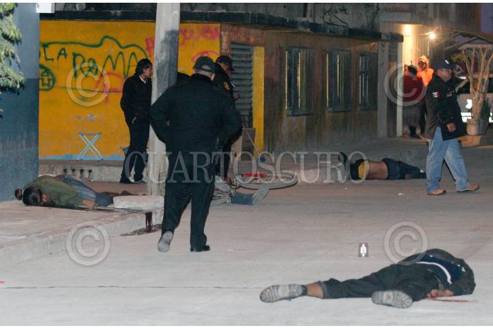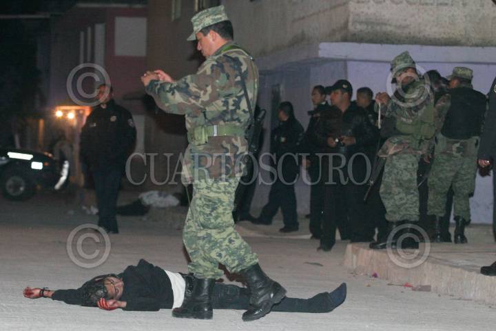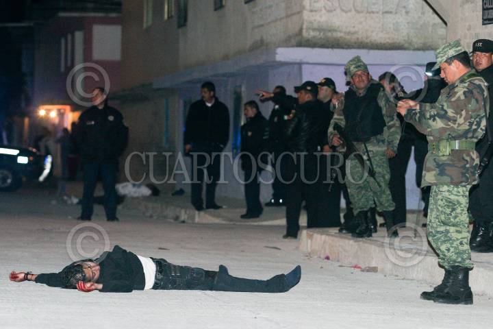 CIUDAD NEZAHUALCOYOTL, ESTADO DE MÉXICO, 12FEBRERO2011.- Nuevamente se registró una ejecución masiva en la zona oriente del Estado de México. Siete personas fueron acribilladas a tiros en la colonia San Agustín Atlapulco ubicada en los límites de Ciudad Nezahualcoyotl y Chimalhuacan. Una mujer fue encontrada sin vida, desnuda y con el tiro de gracia en la colonia vecina donde se encontraron los siete acribillados. Elementos del ejército mexicano, policía estatal, ministerial y municipal montaron un operativo durante la madrugada de hoy para resguardar los cuerpos y ubicar a los presuntos responsables. FOTO: SAÚL LÓPEZ/CUARTOSCURO.COM