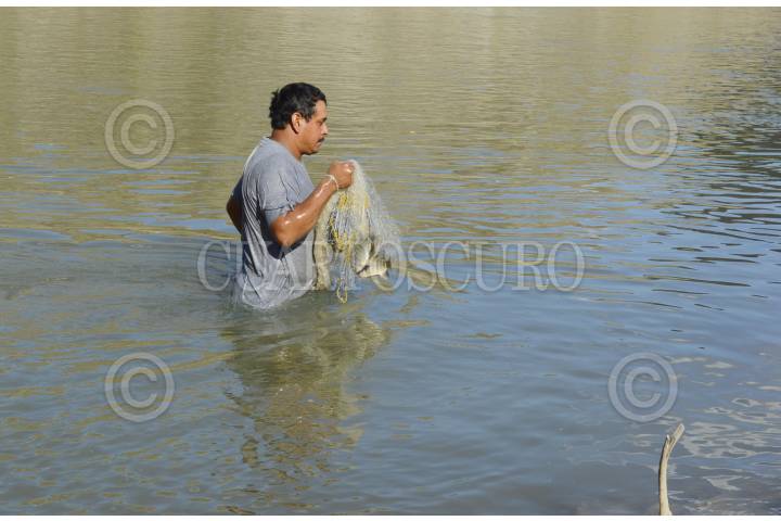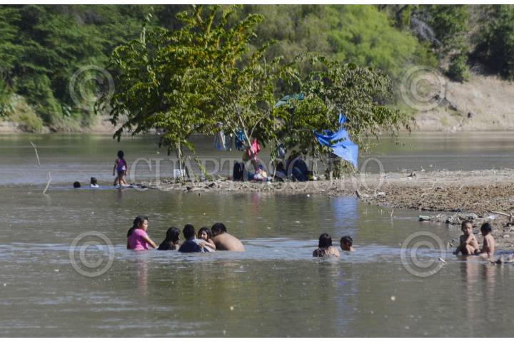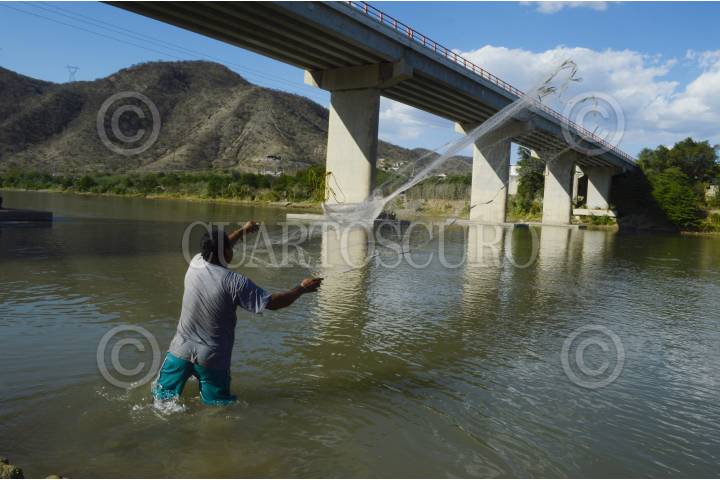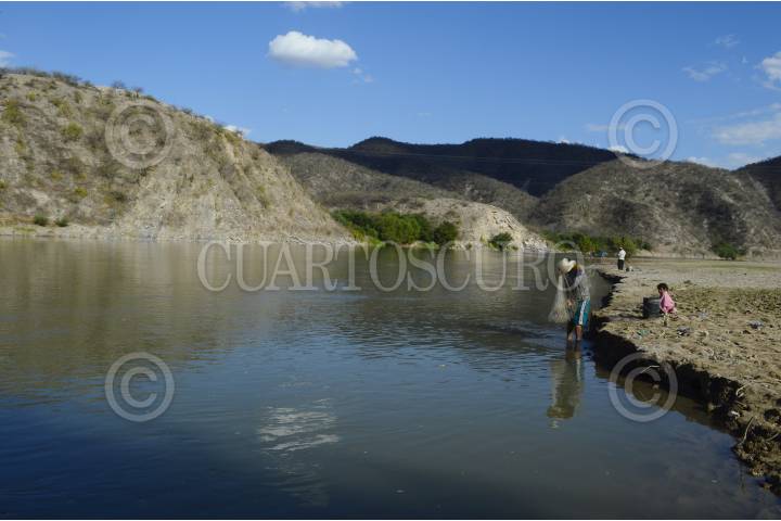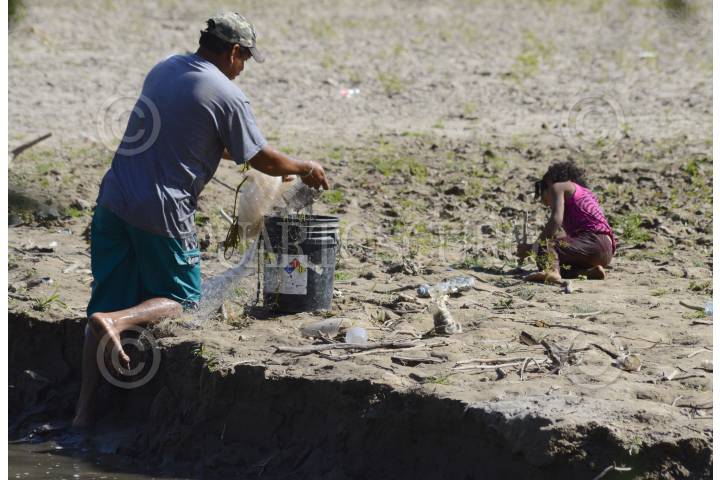 MEZCALA, GUERRERO, 03ENERO2016.- Un hombre de la población de Mezcala pesca en el río mientras su pequeña hija juega en la arena. FOTO: JOSÉ I.HERNÁNDEZ /CUARTOSCURO.COM