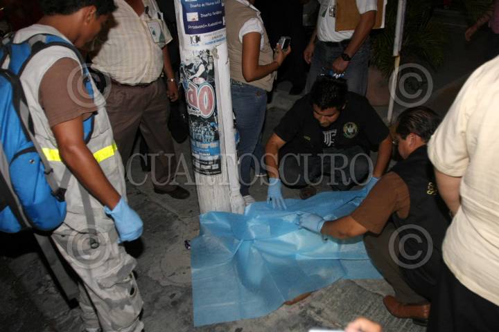 CANCÚN, QUINTANA ROO, 20AGOSTO2009.- Balean a presunto distribuidor de droga, sin que se haya confirmado el nombre del ahora occiso, luego de ser perseguido por sicarios en céntrica avenida de este destino turístico. FOTO: AMARANTA PRIETO/CUARTOSCURO.COM