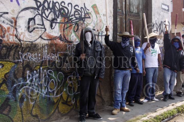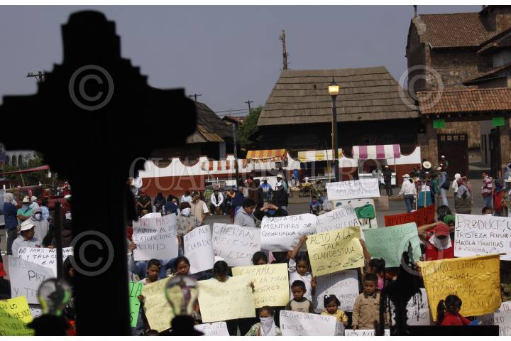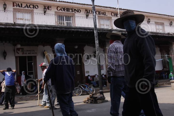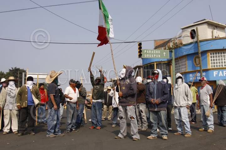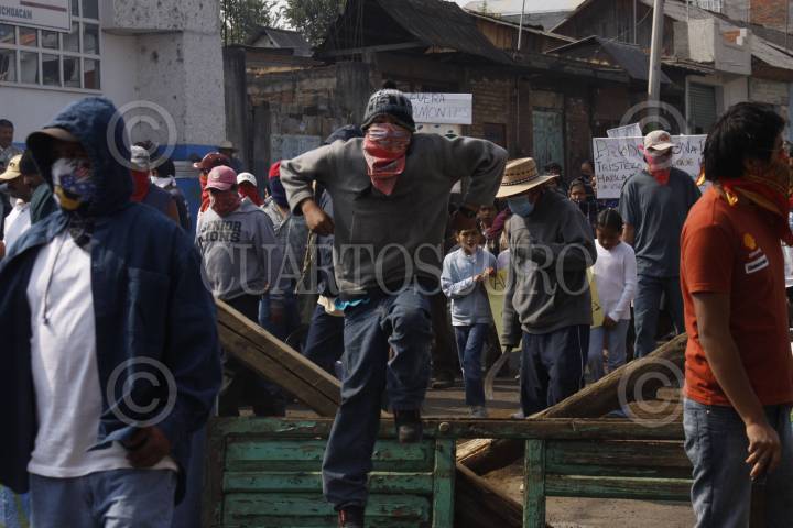 CHERÁN, MICHOACÁN, 03MAYO2011.- Habitantes de la comunidad Purépecha mantienen un estado de sitio permanente con barricadas en cada calle dentro de la comunidad de 20 mil habitantes luego de registrarse un enfrentamiento con talamontes protegidos por un grupo armado que dejó como saldo dos comuneros muertos y 10 vehiculos incinerados que fueron detenidos con madera. Los comuneros mantienen bloqueos permanentes y buscan que las autoridades garanticen su seguridad por lo que piden la presencia del ejército. FOTO: IVAN STEPHENS/CUARTOSCURO.COM