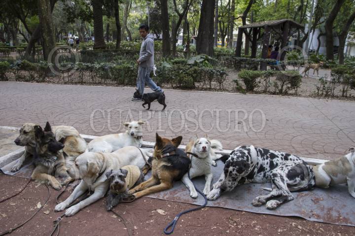 MÉXICO, D.F., 02ENERO2014.- Decenas de perros son entrenados en el Parque México para que aprendan a convivir entre ellos y el espacio en el que habitan. A partir de este año, el alimento para mascotas fue grabado con el 16 por ciento de IVA, por lo que se temía que algunos de éstos fueran abandonados. Sin embargo, los entrenadores de estos animales cobran hasta 600 pesos por cuidarlos a la semana sin que el nuevo impuesto haya afectado su actividad. FOTO: ISAAC ESQUIVEL /CUARTOSCURO.COM