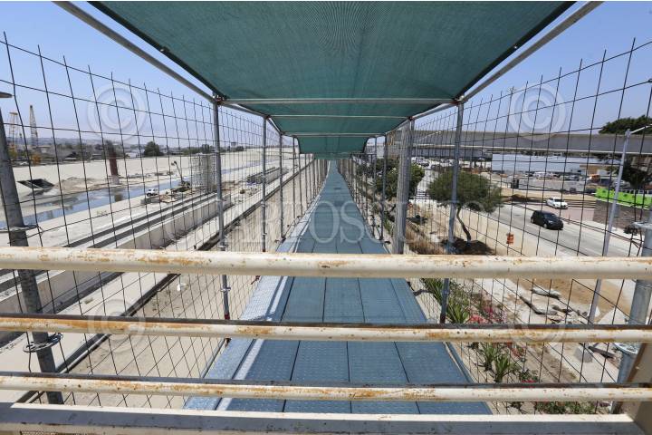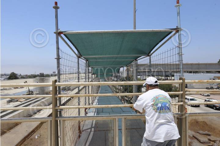 TIJUANA, BAJA CALIFORNIA, 30JUNIO2016.- Infraestructura que se monta por parte del gobierno mexicano en el bordo de la canalización del Río Tijuana con la cual se pretende dar acceso al nuevo edificio construido por el gobierno estadounidense, Ped West, que contará con 14 carriles peatonales para los 25 mil viajeros que cruzan caminando diariamente de Tijuana a San Diego. FOTO: CHRISTIAN SERNA /CUARTOSCURO.COM