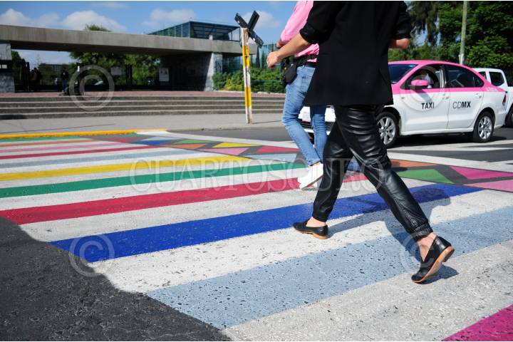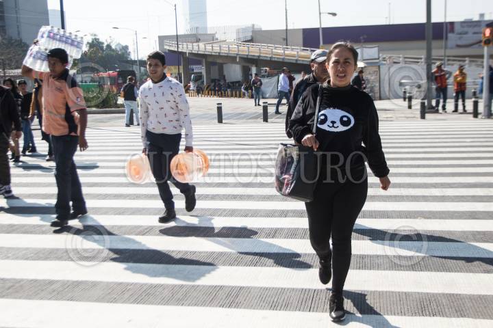 Una mujer cruza la avenida por el nuevo cruce peatonal en Azcapotzalco.