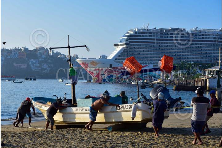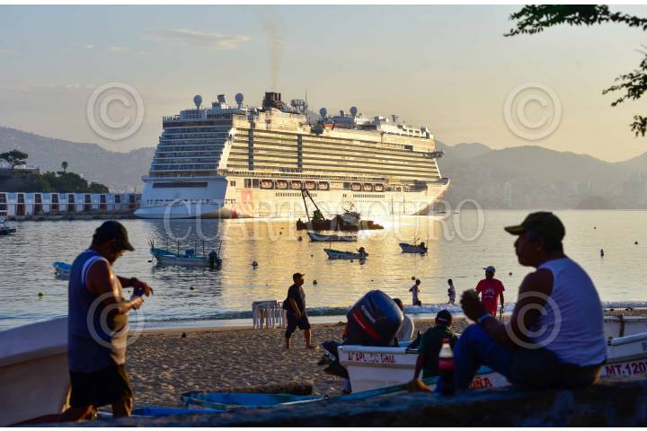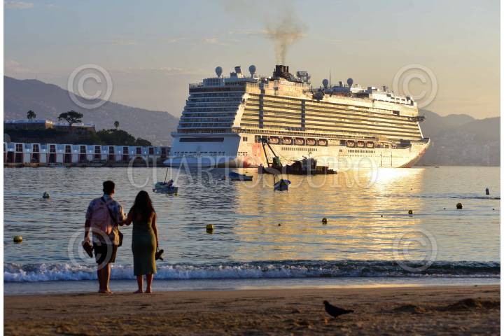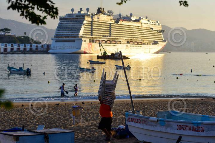 ACAPULCO, GUERRERO, 01FEBRERO2025.- Esta mañana, el crucero Norwegian Joy arribó al puerto de Acapulco, mientras que habitantes del puerto salen a las calles y playas para iniciar un día más. Hacen ejercicio, caminan hacia sus trabajos o simplemente contemplando el inicio de un nuevo día. FOTO: CARLOS CARBAJAL/CUARTOSCURO.COM