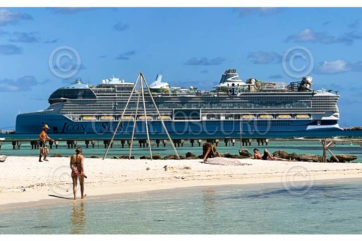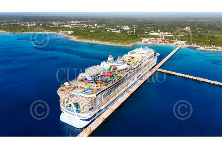 MAHAHUAL, QUINTANA ROO. 06FEBRERO2024. “Al Icon of The Seas” el crucero más grande del mundo. Con más de 10 mil personas a bordo y una longitud de 365 metros, marca un hito en la recuperación del turismo de cruceros en la región. Este barco de la Royal Caribbean se suma a las más de 217 llegadas de cruceros este año. FOTO: ELIZABETH RUIZ/CUARTOSCURO.COM