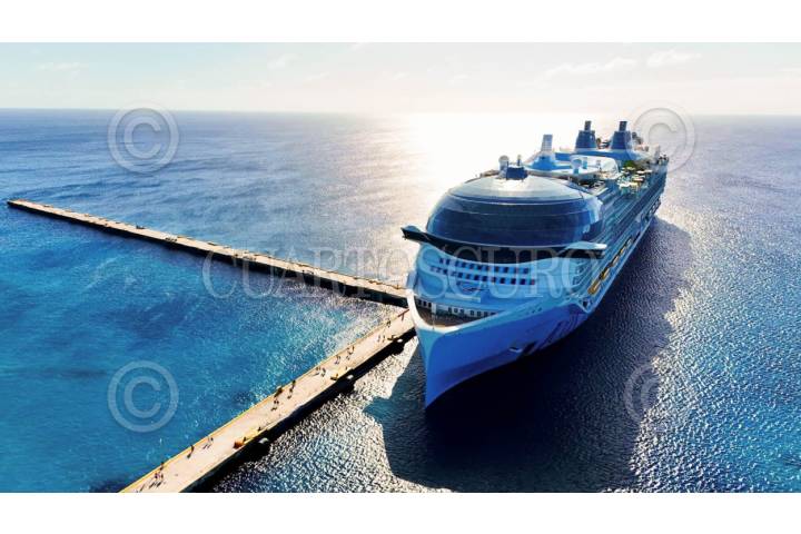 COZUMEL, QUINTANA ROO, 11JUNIO2025.- A pesar del rechazo de algunos sectores se anunció oficialmente el proyecto del Cuarto Muelle en Cozumel, cuya construcción se prevé que inicie a partir de agosto. En la imagen se observa las playas limpias de sargazo y la llegada de un crucero. FOTO: ELIZABETH RUIZ/CUARTOSCURO.COM