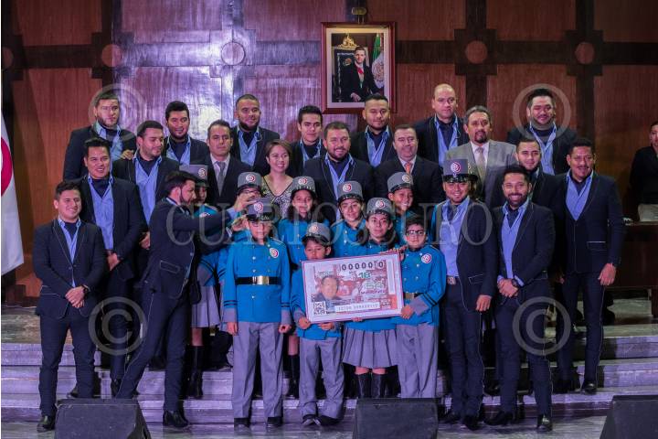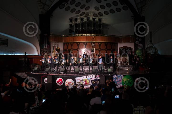 CIUDAD DE MÉXICO, 24JULIO2018.- Alfonso Lizárraga, cantante, presidió el sorteo 3677 conmemorando los 100 del natalicio de Cruz Lizárraga su padre y fundador de la banda sinaloense “El recodo”; quienes terminando de anunciar los ganadores de hasta 18 millones de pesos, se presentaron para tocar sus éxitos. Convirtiéndose en la primera banda invitada a tocar en el salón de sorteos. FOTO: ANDREA MURCIA /CUARTOSCURO.COM