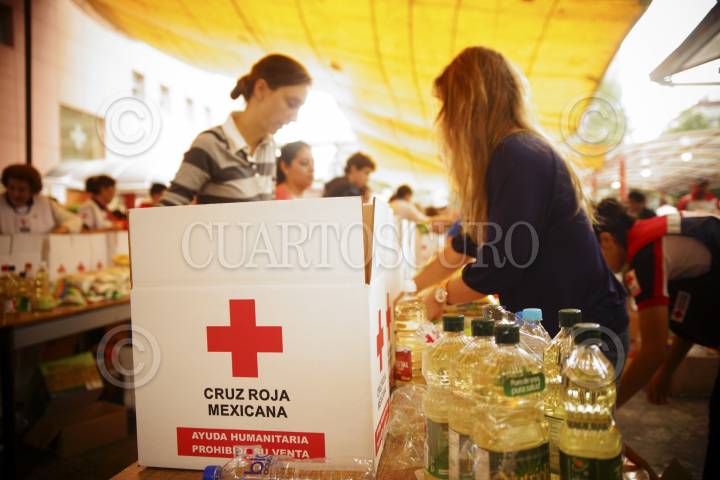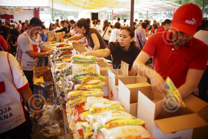 MÉXICO, D.F., 19SEPTIEMBRE2013.- En las instalaciones de la Cruz Roja de México se organizó un centro de acopio con amplia participación cuidadana. Los apoyos serán distribuidos para los 54 municipios de Guerrero que resultaron afectados por las tormentas Manuel e Ingrid. También muchos de los productos son para el estado de Sinaloa que esta siendo azotado por la tormenta tropical Manuel.. FOTO: ALEJANDRO NEYRA /CUARTOSCURO.COM