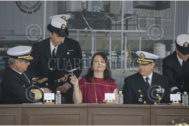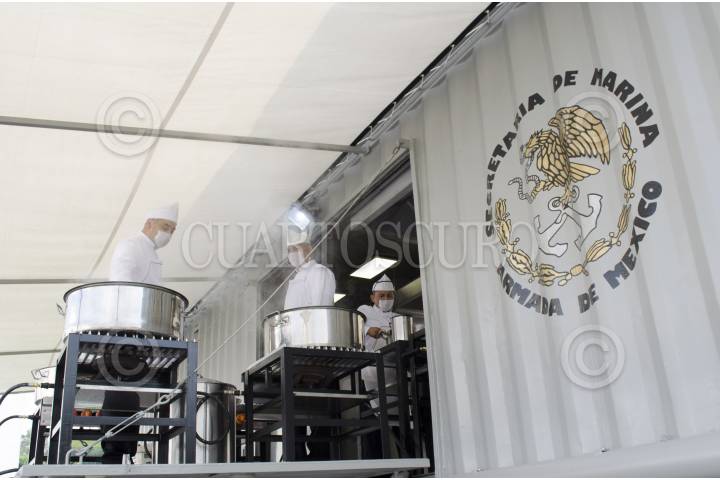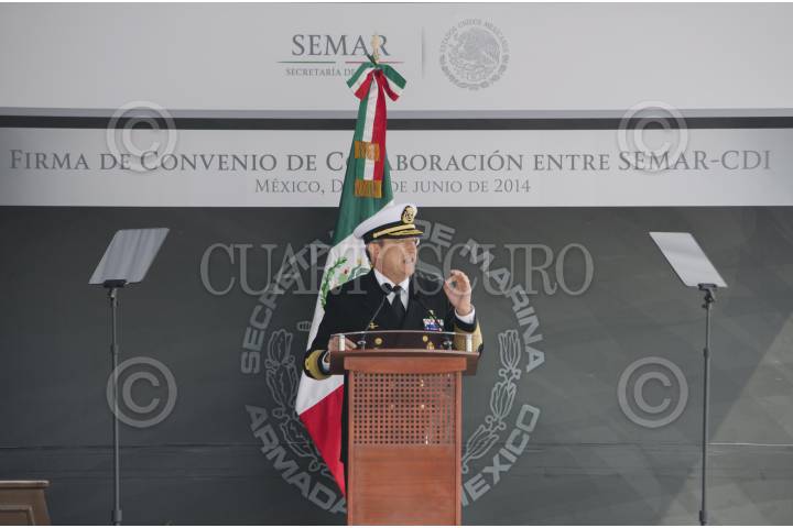 MÉXICO, D.F., 13JUNIO2014.- Vidal Francisco Soberón Sanz, secretario de Marina, y Nuvia Mayorga, directora de la Comisión Nacional para el Desarrollo de los Pueblos Indígenas (CDI), firmaron un acuerdo entre las dos dependencias para establecer los compromisos a seguir en el marco de la Cruzada Nacional contra el Hambre. Se presentó además el Comedor Móvil el cual producirá 15 mil raciones de comida al día en zonas de desastre. FOTO: MARÍA JOSÉ MARTÍNEZ /CUARTOSCURO.COM