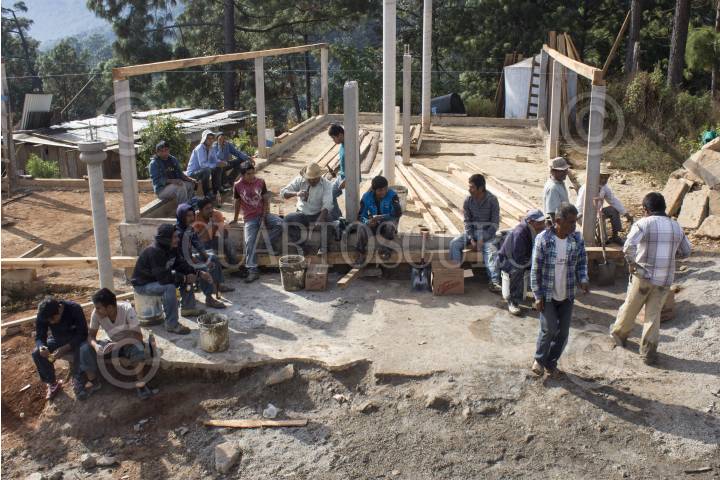COCHOAPA EL GRANDE, GUERRERO, 25DICIEMBRE2014.- Los contrastes son visibles en el muncipio de Cochoapa el Grande, Guerrero, catalogado como el más pobre del país de acuerdo con cifras del 2006 de la Conapo. Las luminarias modernas resaltan con las casas de madera y adobes sobre la calle principal del pueblo. Con la visita del presidente Peña Nieto en enero de este año se construyeron casas y comedores comunitarios para la gente, también se implementaron programas gubernamentales de apoyo para el campo y las mujeres productoras, no obstante, la calidad de vida no ha mejorado en mucho, pues los recursos recibidos terminan convertidos en muchos casos en botellas de alcohol o antenas de televisión de paga que contrastan con los techos de lámina de las casas de madera. En el pueblo también hay presencia del narcotráfico, el cual no puede ser combatido por la policia municipal pues afirman que no pueden hacer nada con sus rifles contra los cuernos de chivo. En la imagen, albañiles toman un descanso para beber una cerveza antes de continuar. FOTO: DAVID POLO /CUARTOSCURO.COM