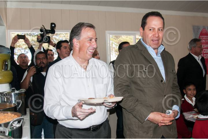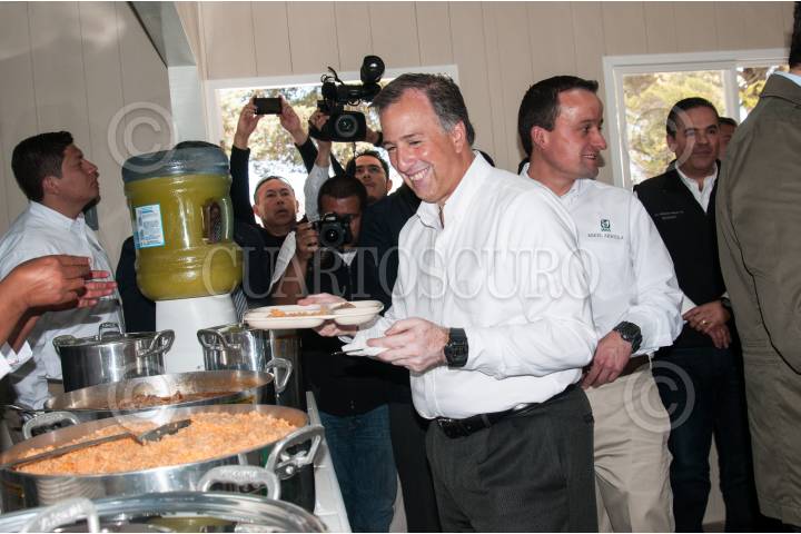 ALMOLOYA DE JUAREZ, ESTADO DE MEXICO, 23FEBRERO2016.- José Antonio Meade Kuribeña, titular de la SEDESOL y Eruviel Ávila Villegas, gobernador del estado, durante la puesta en marcha del comedor escolar, como parte de las acciones de la estrategia de inclusión social, en las canchas de la Escuela Primaria “Álvaro Obregón”. FOTO: DIEGO SIMÓN SÁNCHEZ /CUARTOSCURO.COM