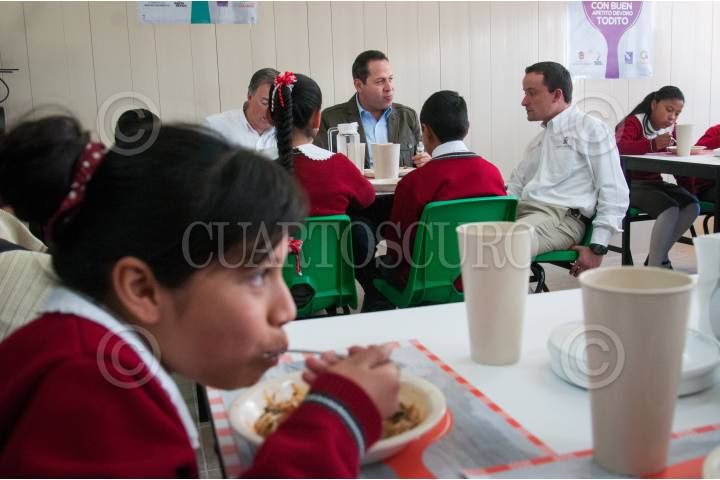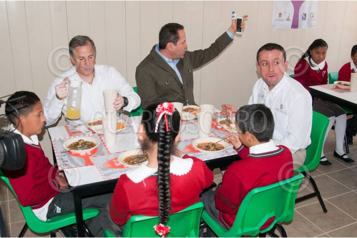 ALMOLOYA DE JUAREZ, ESTADO DE MEXICO, 23FEBRERO2016.- Mikel Arriola, titular del IMSS y José Antonio Meade Kuribeña, titular de la SEDESOL, durante la puesta en marcha del comedor escolar, como parte de las acciones de la estrategia de inclusión social, en las canchas de la Escuela Primaria “Álvaro Obregón”. FOTO: DIEGO SIMÓN SÁNCHEZ /CUARTOSCURO.COM