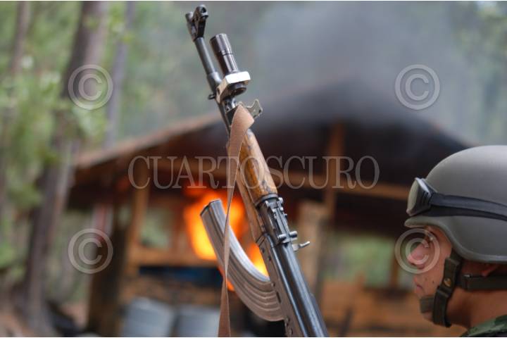 MORELIA, MICHOACAN, 22ENERO2010.- Elementos del Ejército Mexicano adscritos a la XXI Zona Militar, desmantelaron tres "narcolaboratorios", en donde además de encontrar precursores químicos para la fabricación de droga conocida como "Crystal", decomisaron 118 granadas calibre .40 mm, 15 armas largas y seis cortas, además cargadores de armas y cartuchos útiles, todo esto en los municipios de Cherán, Tangancicuaro y Purepero. FOTO: LEOVIGILDO GONZÁLEZ/CUARTOSCURO.COM