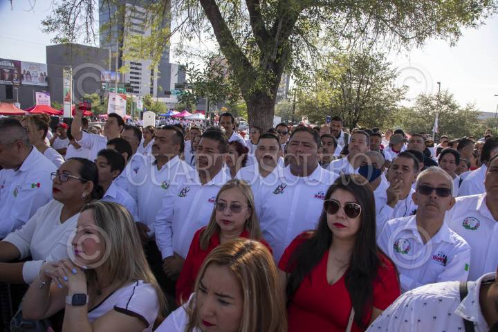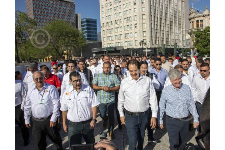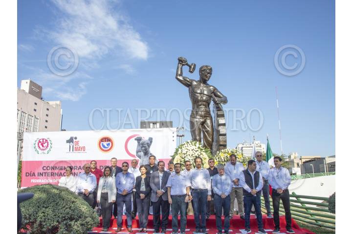Conmemoran el día internacional del trabajador con una guardia de honor encabezada por la CTM de NL, sindicatos de trabajadores, presidentes estatales del PRI y PRD y representantes del gremio empresarial de Nuevo León.