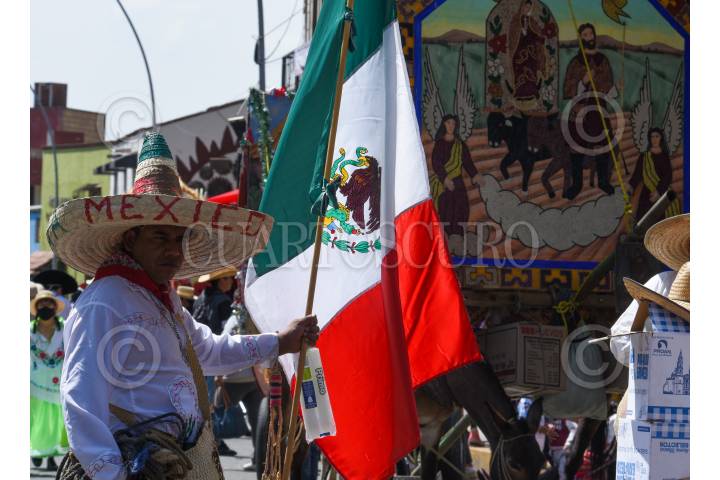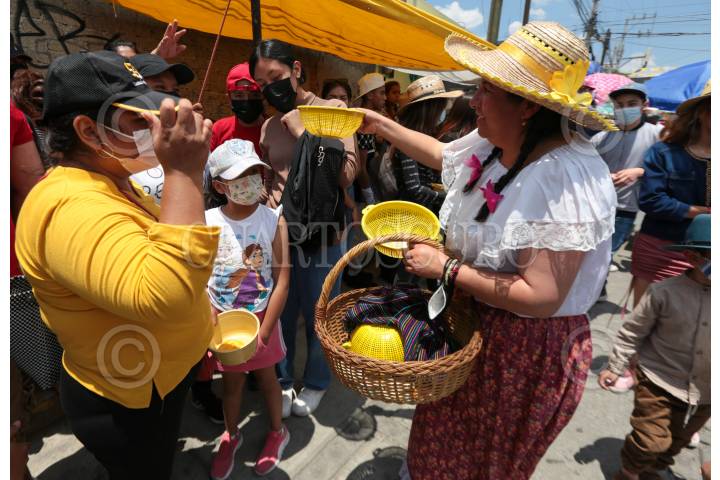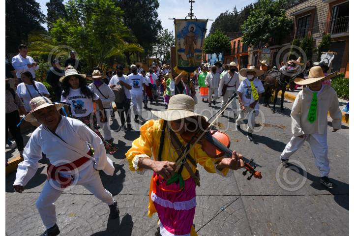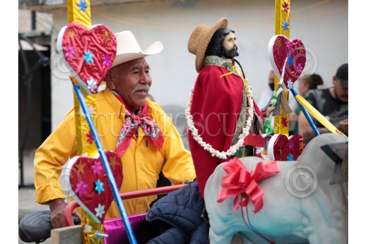 Al ritmo de la música cuadrillas de Santa Ana Tlapaltitlán recorrieron esta delegación en Toluca en honor a San Isidro Labrador, santo patrono de la agricultura, acompañados de yuntas, tractores y carros alegóricos regalando algún dulce o presente a los asistentes.