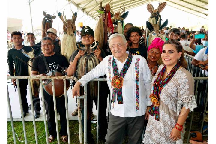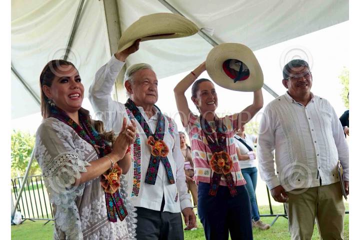 CUAJINICUILAPA, GUERRERO, 28JULIO2024.- Andrés Manuel López Obrador, Presidente de México, y Claudia Sheinbaum Pardo, Presidenta Electa de México, encabezaron el evento de evaluación “Caminos de Mano de Obra de la Montaña de Guerrero. FOTO: CARLOS ALBERTO CARBAJAL/CUARTOSCURO.COM