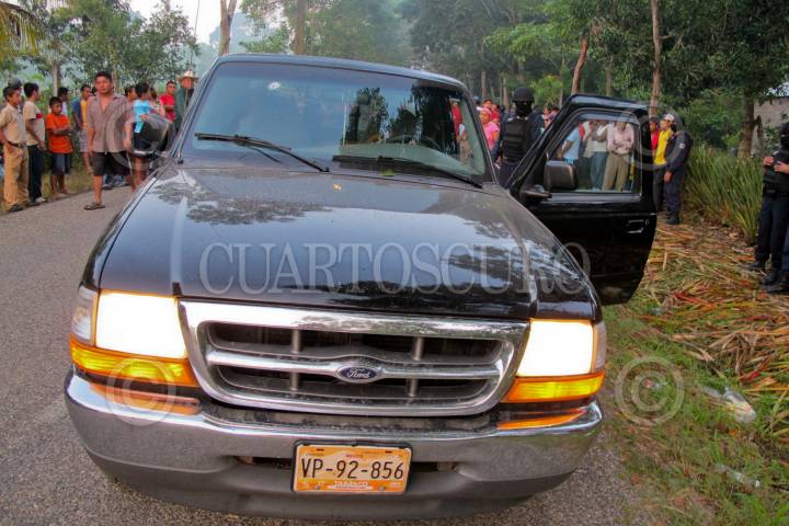 CUNDUACAN, TABASCO, 18OCTUBRE2010.- Miguel Cortazar Gomez, jefe de guardia del segundo turno del CRESET fue emboscado y acribillado a balazos por un comando del brazo armado cuando transitaba en su camioneta color negra a la altura de la rancheria Huimango segunda, seccion La Mona. FOTO: MARCO POLO GUZMAN HERNANDEZ/CUARTOSCURO.COM