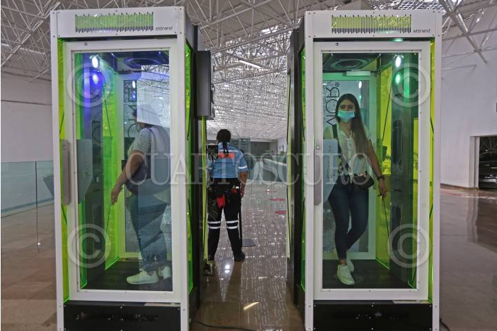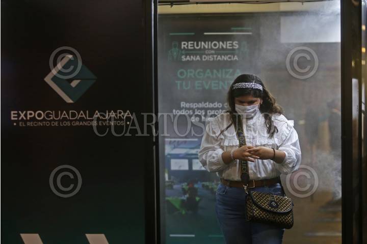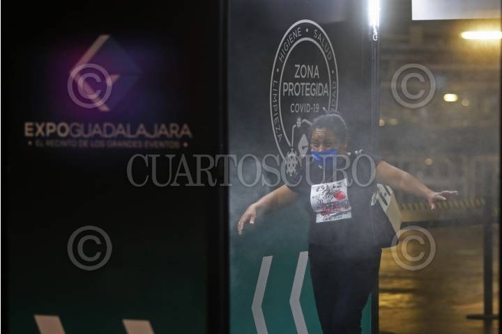 Asistentes a la inauguración de la edición 73 de Intermoda realizan los protocolos de sanitización para ingresar a el recinto ferial en esta nueva normalidad, en uno de los primeros eventos presenciales después de una larga cuarentena tras la Pandemia Sanitaria del Covid-19.