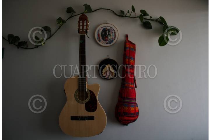 El departamento de Alyna y Carmen es muy pequeño. Ellas cuentan que han aprendido a respetar el espacio individual de cada una. En la foto Alyna dibuja sus bocetos de tatuaje mientras que Carmen borda sus pedidos