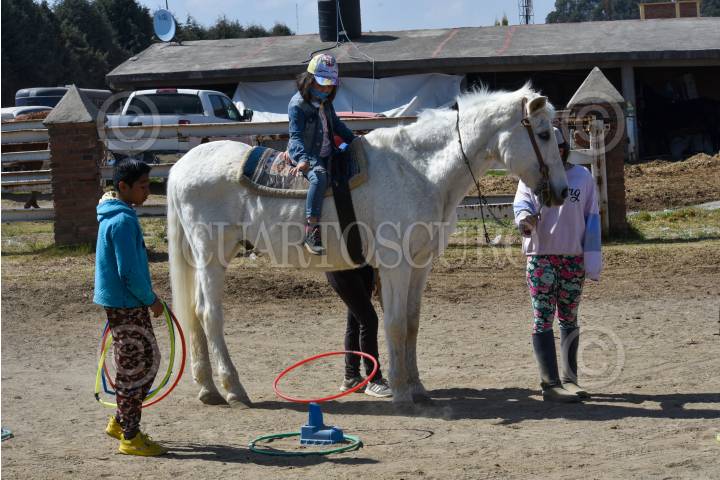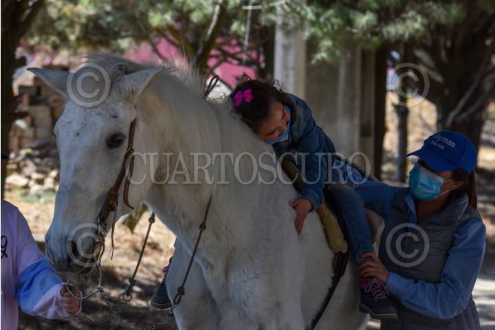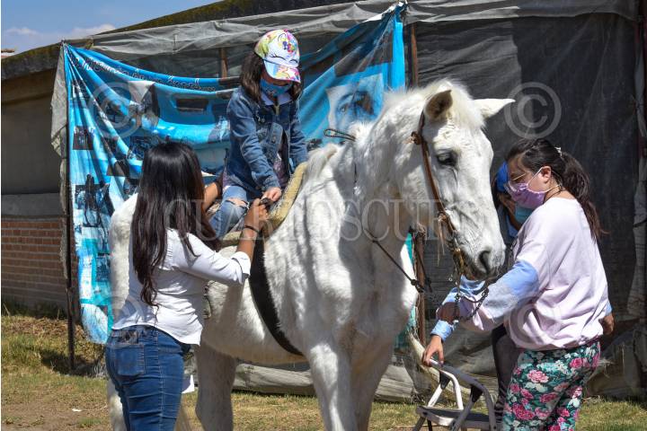 Después de permanecer cerrado el centro de equinoterapia de Veronica Manjarrez por el semáforo epidemiológico por COVID-19 regreso a dar terapias no solo a sus pacientes frecuentes si no que se empezaron a á acudieron niños y adultos con problemas de ansiedad, estrés y depresión originados por el encierro.