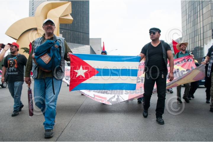CIUDAD DE MÉXICO, 22JULIO2017.- Un grupo de personas realizaron una marcha en solidaridad con Cuba del Hemiciclo a Juárez a la embajada de Estados Unidos con motivo del aniversario al asalto del cuartel Moncada, lo que significo el triunfo de la Revolución Cubana. FOTO: DIEGO SIMÓN SÁNCHEZ /CUARTOSCURO.COM